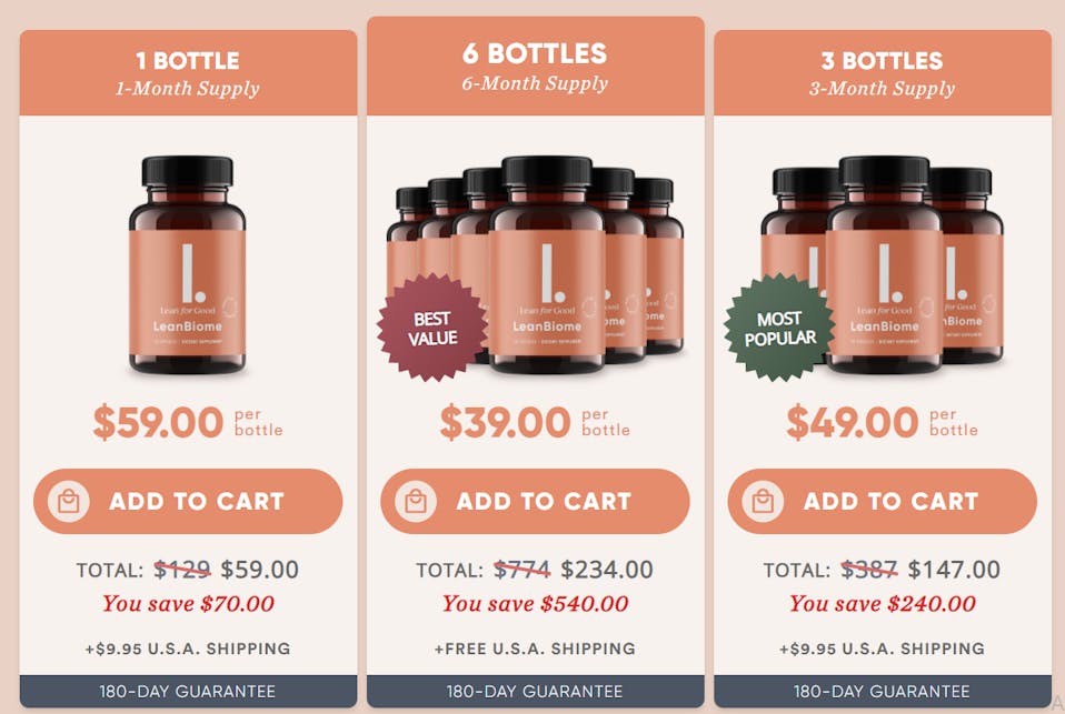 Lean for Good LeanBiome supplement will be available for you to test out for six month. You can apply for our FULL refund if you are among the 0.5% who are not satisfied. Consider this a trial run in case things don't go your way. LeanBiome supplement may work. If it doesn't, you can ask for your money-back. Be sure to click on the ADD TO CART below to get your hands on your selected package. Click on one of the "ADD TO CART" buttons right now... take your free test run and completely change your life.